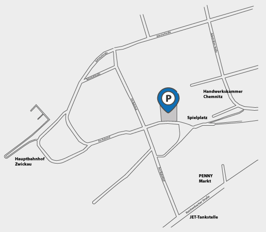 Wir vermieten Stellplätze für nur 25€ / Monat in der Nähe des Hauptbahnhofs Zwickau (Am Bahnhof 4). Dieser ist fußläufig in nur 5 Minuten zu erreichen.